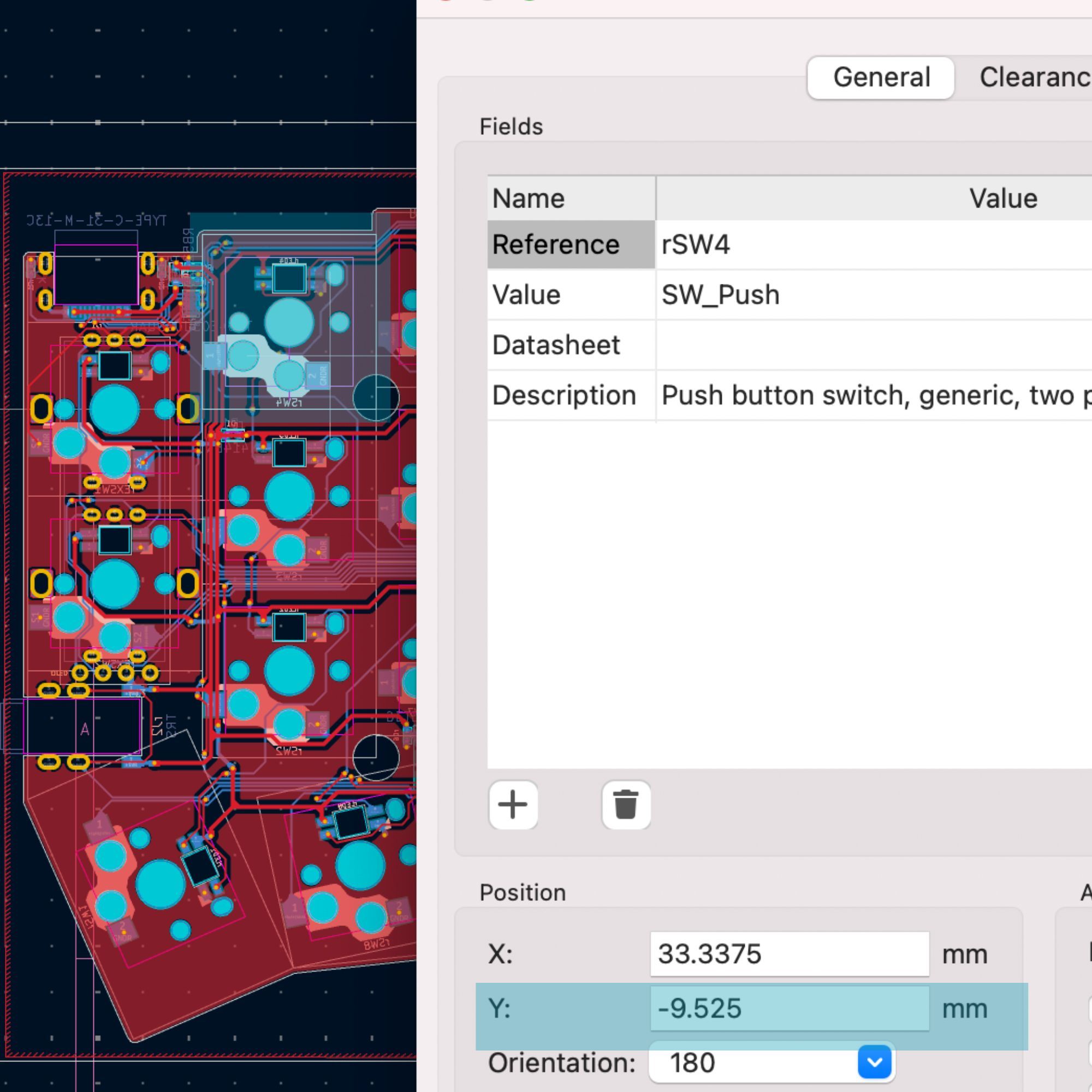The Y position of a key and the one below it: 9.525mm - (-9.525)mm = 19.05 mm